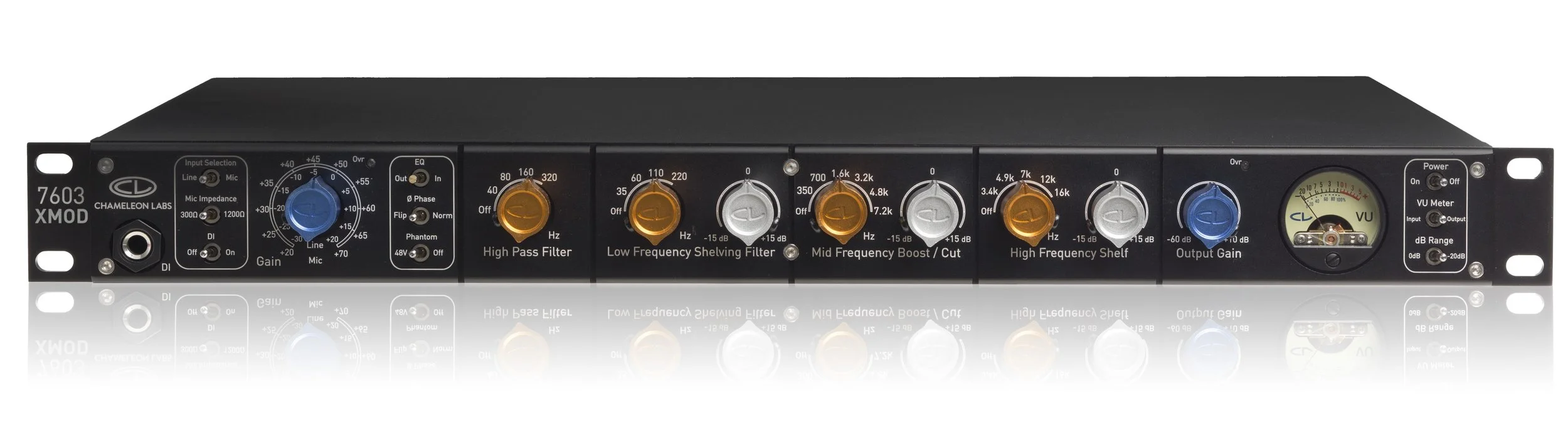 As with the 7603, the fundamental design architecture of the 7603-XMod retraces the path of revered, classic pre-amps of the past as well as our popular 7602, however Chameleon has chosen to continue the tradition created by the 7602-XMod, allowing users to revel in the character and performance afforded by Carnhill's legendary English components.